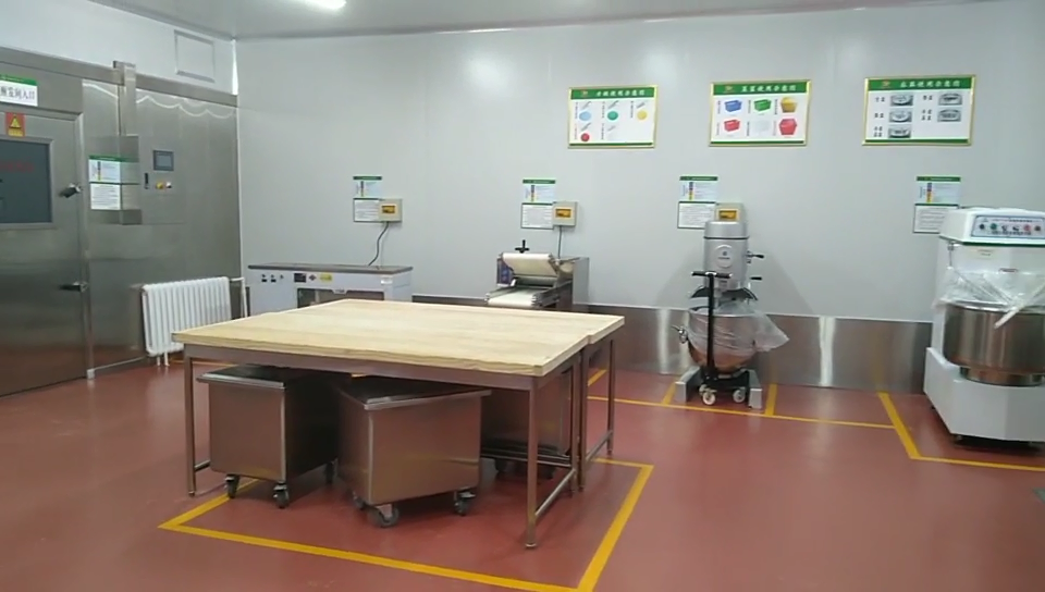 設(shè)備:雙星水池、調(diào)料柜、餅盆車、木面案板臺、面粉車、攪拌機、和面機、全自動壓面機、面團成型機、分離式切臺、自動擺盤機、自動給餡機等。油網(wǎng)煙罩、蒸箱、蒸汽發(fā)生器、油網(wǎng)煙罩、多層電焗爐、醒發(fā)庫、四層貨架等。