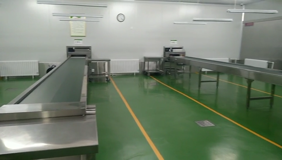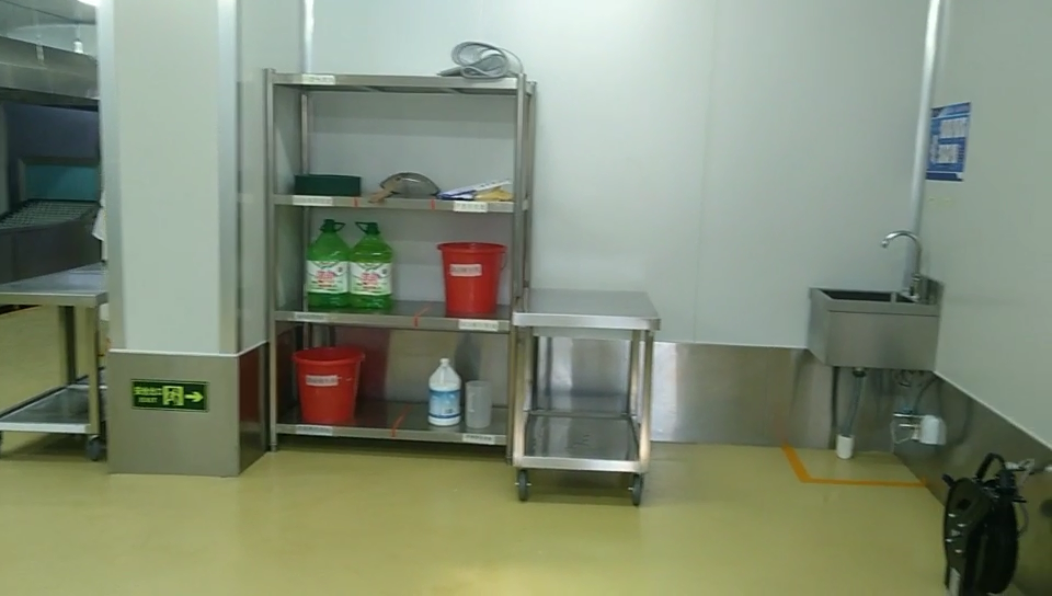 設(shè)備:新興榮福分餐線、無動力滾軸、活動雙層工作臺、掛墻洗手池、沖地龍頭等。