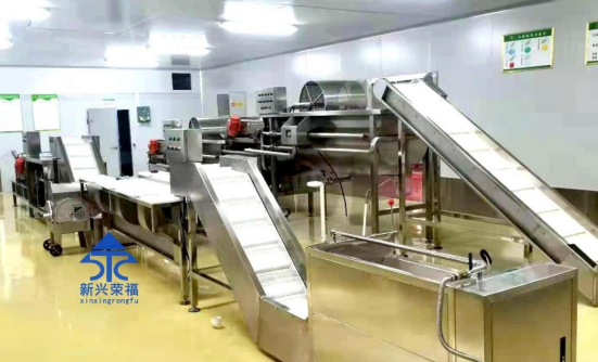 用于根莖菜、葉類菜的清洗加工線,不但可以去除果蔬上殘留的藥液,確保了果蔬的安全;還能防范人工清洗產生遺漏菜品清洗不凈造成的衛生問題,保證菜品品質。
