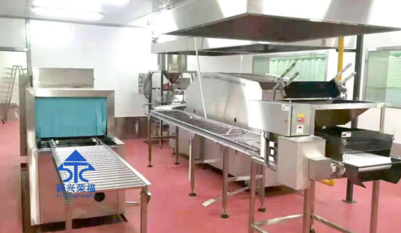 特別選用了新興榮福央廚設備制造的自動化的炒菜機、油炸機等央廚先進設備,能精準的控制熱炒時溫度、時間及用料量,另外,特配的配套料理包,能確保菜品的統一標準化、最大限度的減少營養的損失,最終能確保學生餐的健康、安全、營養。