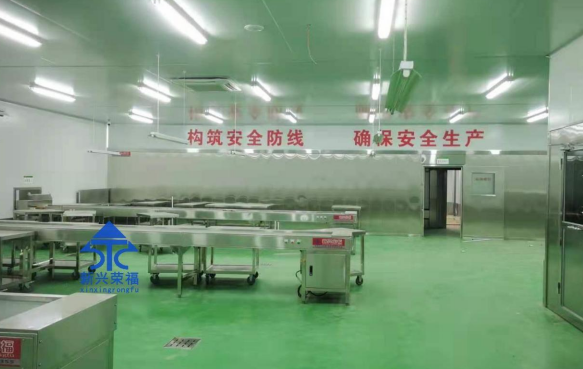 進入分餐凈化間的人員需經過兩次風淋室、兩次更衣,車間內還安裝了紫外線殺菌,臭氧消毒設施;配有獨立的凈化空調空調確保了學生的入口食物的絕對安全。