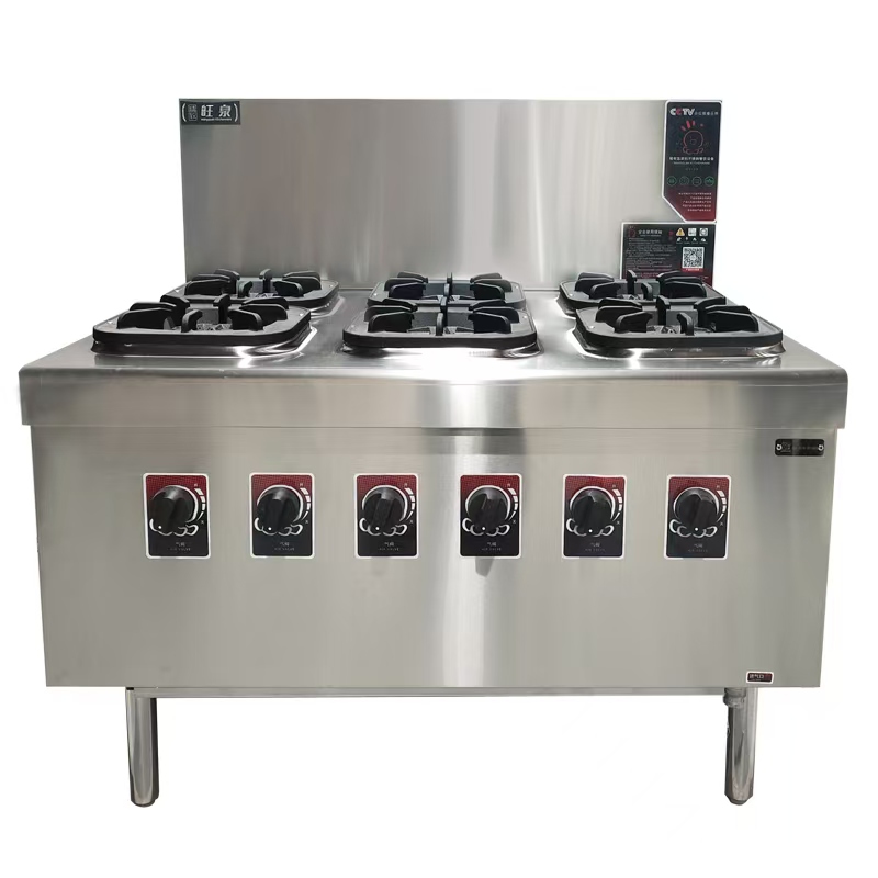 爐面板采用優質不銹鋼板。爐體骨架選用40X40X4mm角鐵焊接制作并加防銹漆, 爐頭支架250X250mm結構堅固,外形美觀簡潔。每個爐面燃燒器都配置獨立控制開關。配有安全點火棒一支。